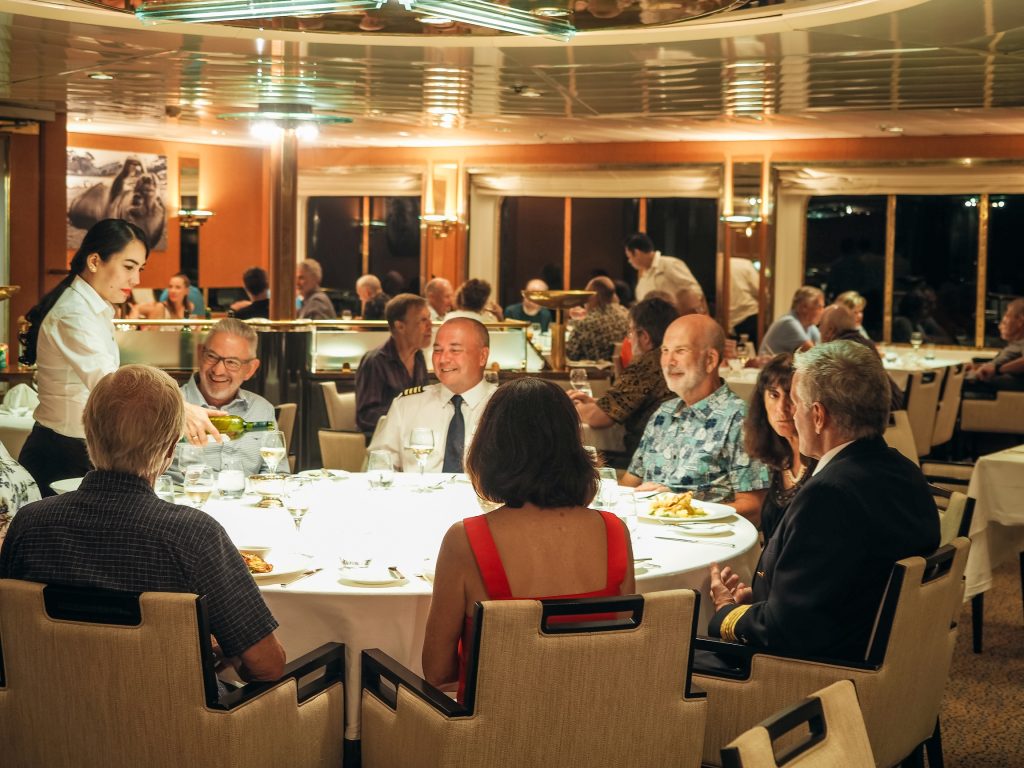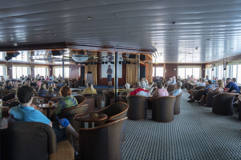- The Bar and Lounge: the main social hub on the Heritage Adventurer where guests can enjoy a drink at the bar and attend various lectures and briefings by the expedition staff. Located on deck 5 aft.