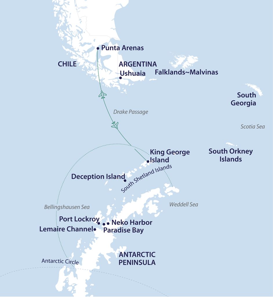 - Soar over the Drake Passage in both directions, soaking in the icy scenery below