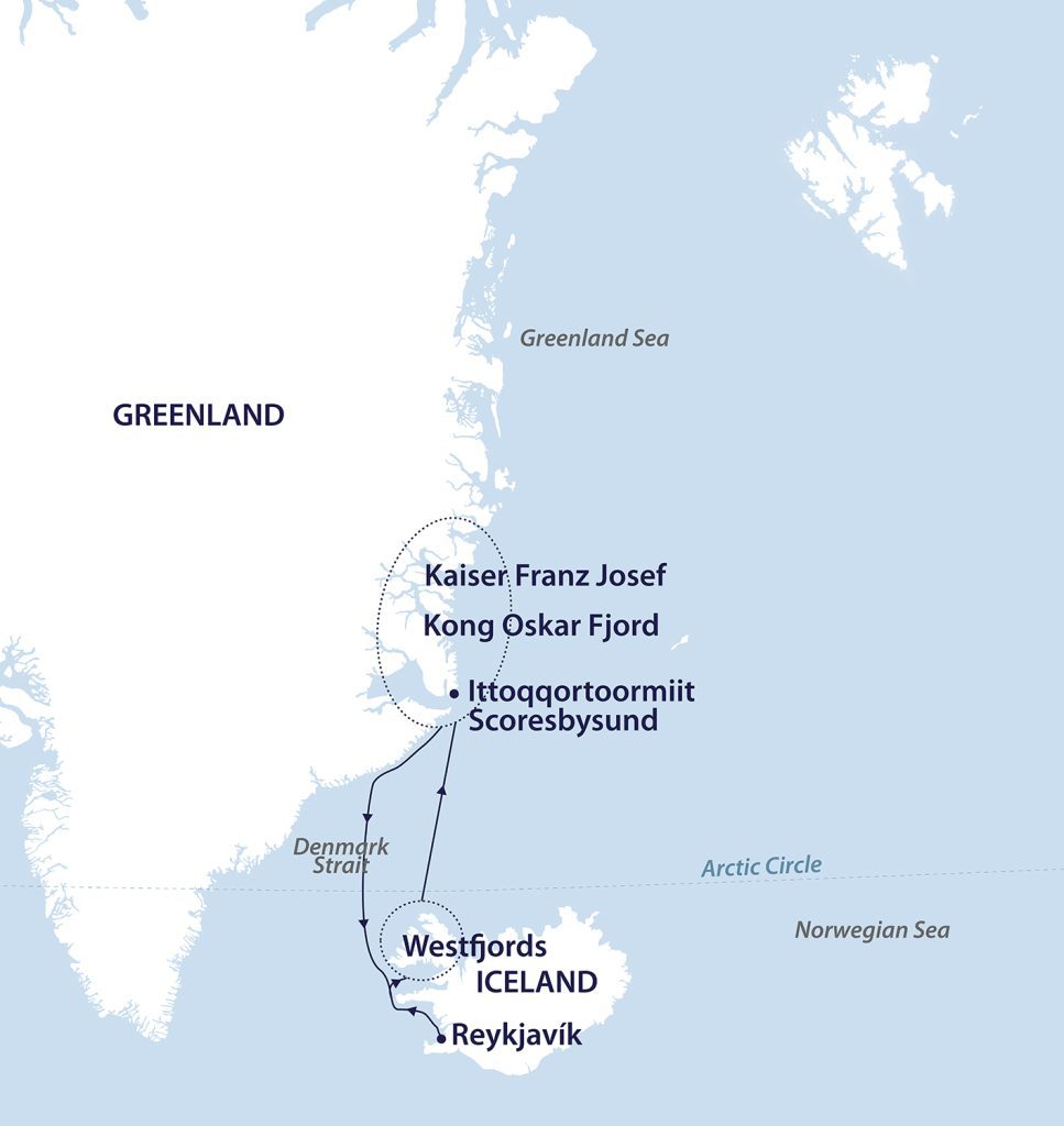 An exploration like no other; this one-of-a-kind voyage of discovery heads into the vast landscapes of Eastern Greenland and Iceland’s Westfjords. The only guarantee is a genuine voyage of exploration and adventure. Wild Kaiser Franz Joseph Fjord beckons exploration, where glaciers offload icebergs the size of small cities into deep fjords, and where kittiwakes, arctic terns and glaucous gulls plunge the water surface for zooplankton amidst collapsing ice. In Scoresby Sund, the largest fjord system in the world, we watch bergs drift silently against autumnal vegetation, revealing arctic hares, musk oxen and elusive ptarmigan. True exploration awaits us.