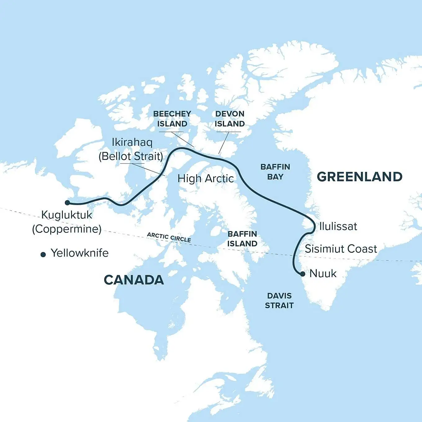 - 4 planned days in West Greenland & 10 days in the Canadian Arctic / Northwest Passage