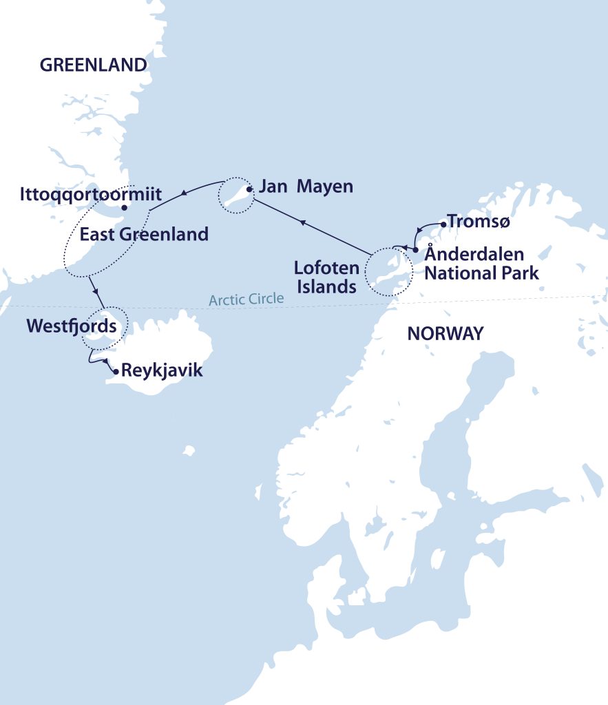 - 3 planned Norwegian coast, 1 day Jan Mayen, 6 days East Greenland & 3 days Iceland
