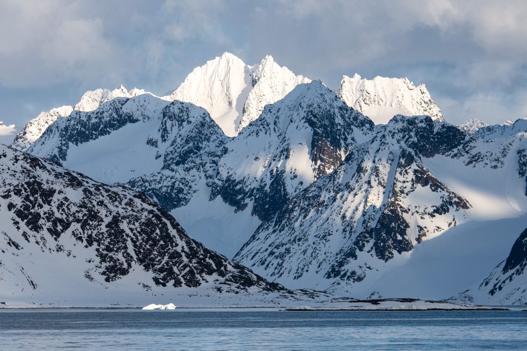 During the Arctic “night,” we sail past Prins Karls Forland to the stunning Kongsfjord, framed by glaciers and the dramatic Three Crowns mountains. The first stop is Ny-Ålesund, Earth’s northernmost settlement, known for its scientific stations and historic role as a base for legendary polar explorers like Amundsen and Nansen. This remote outpost continues to support vital research amid its breathtaking surroundings.