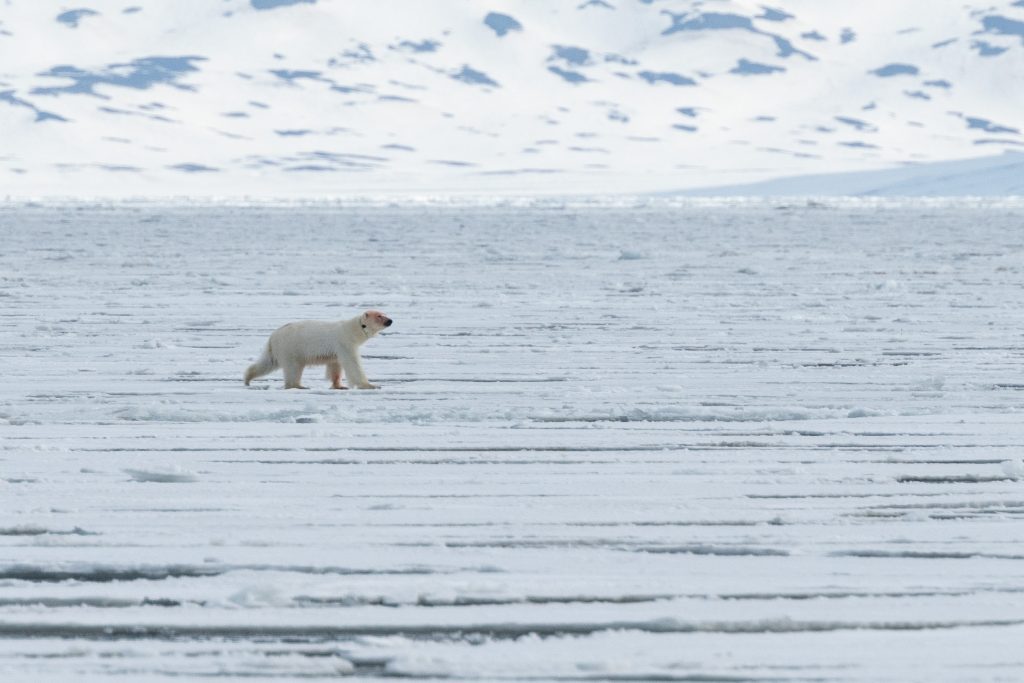 - Sailing through the pack ice while searching for polar bears, walruses and whales