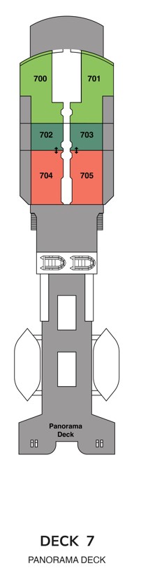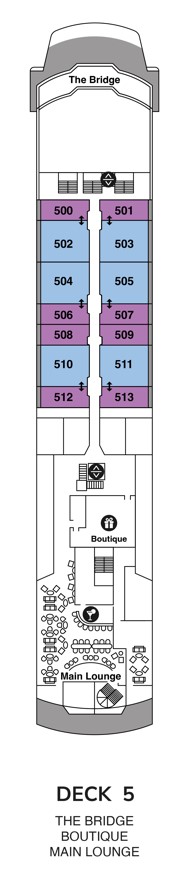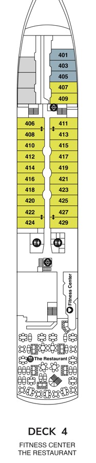 There are three Solo Vista Staterooms, all forward on deck 4. They feature a large ocean-view window, sitting area with writing desk, marble bathroom with shower, and a wardrobe with safe.