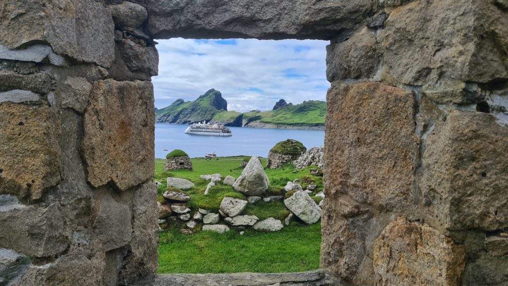 At the Knap of Howar on Papa Westray lies the earliest known house in Northern Europe, occupied by Neolithic farmers over 5,000 years ago. Here we are welcomed by the friendly locals. Enjoy the lively Scottish dance and folk ensemble, “Poor Man’s Corner,” hailing from Papa Westray, set to grace the local pub with their spirited tunes. Mingle and enjoy a few drinks, while listening to the captivating melodies and infectious rhythms.